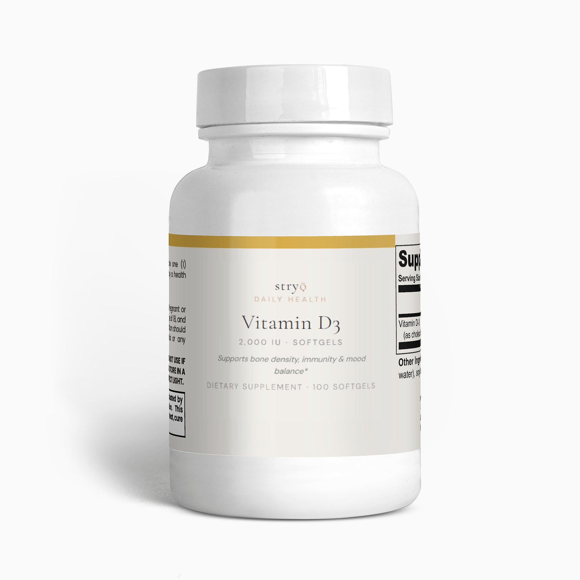 The sunshine vitamin, every day. Vitamin D3 2,000 IU to support bone health, immune function and overall mood. Simple, essential, effective.*